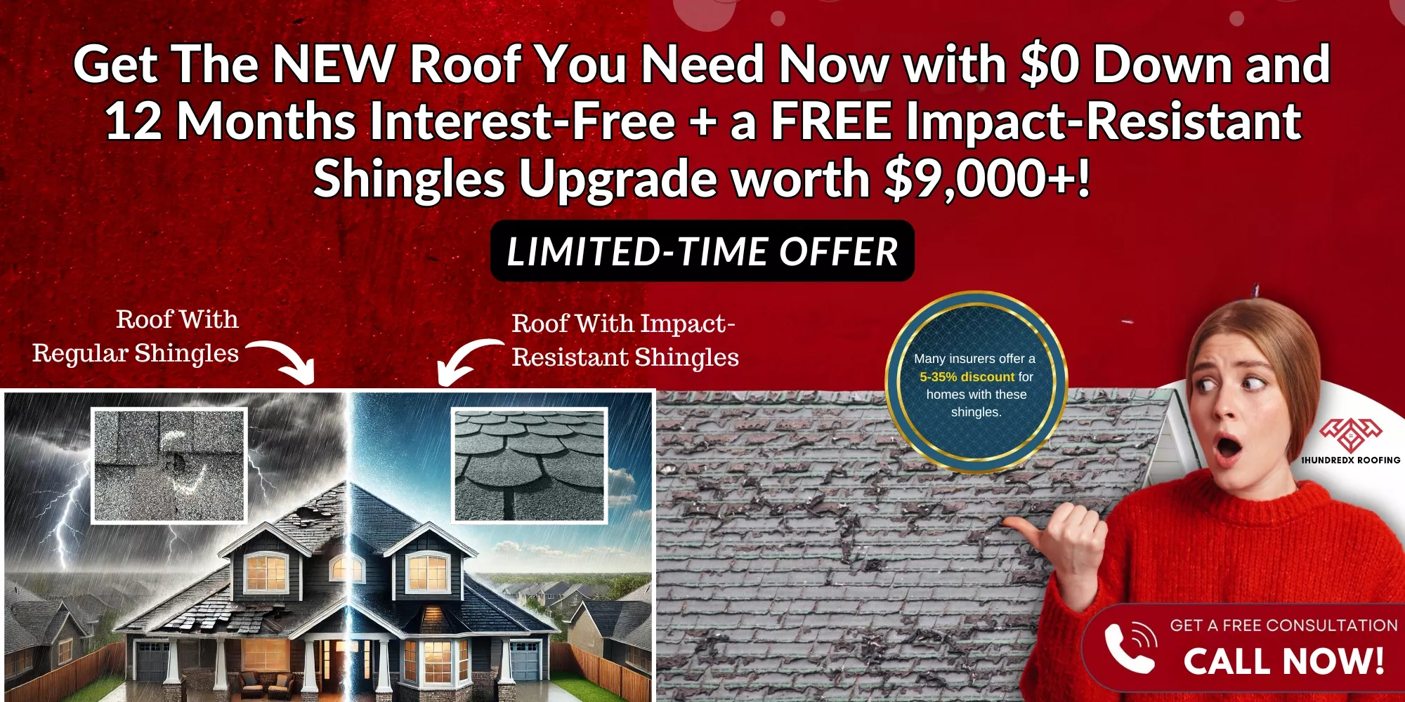Limited to the first 10 homeowners this month—don’t wait! Let 1HundredX Roofing & Exteriors upgrade your roof to certified, impact-resistant quality, providing unparalleled durability and peace of mind.